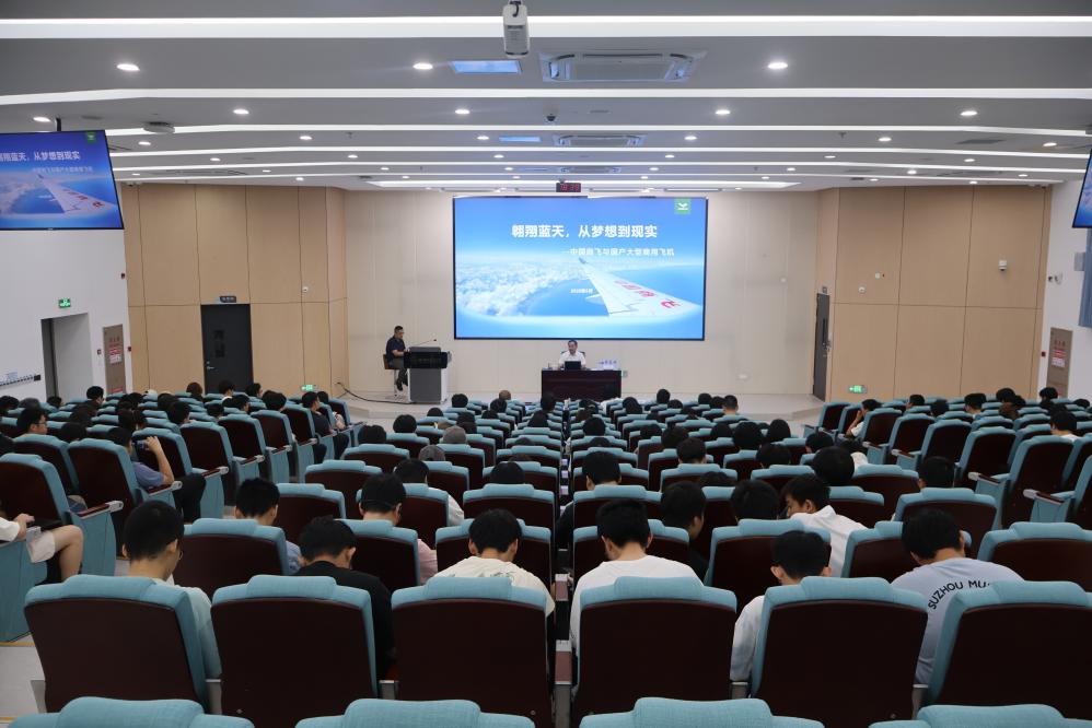 王帮峰系统介绍了中国商飞的发展战略及国产大飞机系列成就。针对C929项目,他重点阐述民航局对主制造商的全生命周期管理要求,详细解读了中国商飞构建的全球化客户服务体系架构,为学院师生展示数字化客服系统建设成果和客服型号项目的研制专项规划。从C919振翅翱翔到C929蓄势待发,新一代民航人的使命光荣而艰巨,王帮峰勉励民航学子传承大飞机精神,用智慧和汗水在万里长空续写中国民航的壮美篇章。