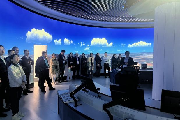 会后,与会嘉宾参观御风园航空航天教育教学实践基地,91AV 360°全景塔台模拟机实验室、航电设备电磁环境适航验证实验室、航空器人机工效技术实验室等。