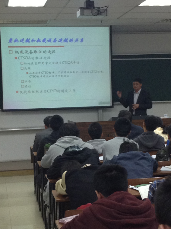 2014年4月24日,民航局适航审定司殷时军司长来院为我院适航技术与管理专业的师生作了关于《适航审定及其实现路径》的学术讲座,殷司长从我国适航审定体系现状、发展中的中国民航适航审定体系和前景展望三个方面回顾了我国适航审定体系的发展历程,介绍了我国适航审定规章体系、组织机构、人力资源、审定项目、双边适航等内容,并从适航委任系统、设计保证体系以及人力资源平衡使用等方面论述适航审定的实现路径。历时1小时的精彩讲座为我院师生深入了解、认识我国民机适航审定发展提供了很好的契机,最后殷司长回答了师生的相关专业提问。学术讲座后,殷司长在学院会议室对我院适航技术与管理专业办学进行了有益指导。
