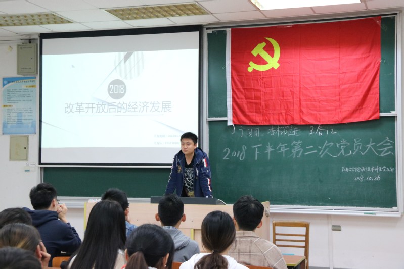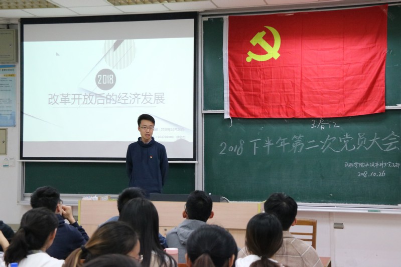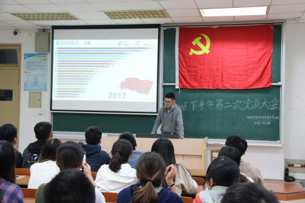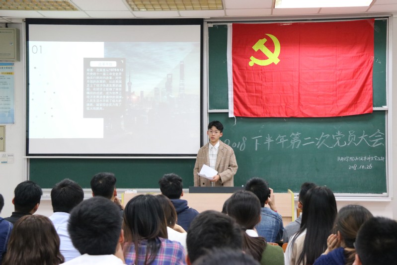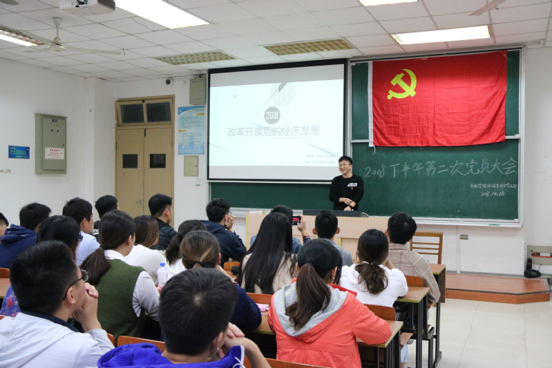 本次党员大会以“改革开放后的经济发展”为主题,由大二的入党积极分子林宏杰同学和大四的发展对象黄晨同学,分别以自己的家乡汕头和深圳为例,讲述了改革开放40年以来家乡的发展变化。