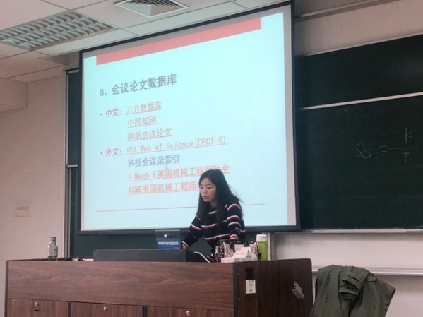 为提升民航学院研究生的科研能力与资料收集能力,拓宽研究生的学术视野,11月1日下午于将军路校区10407教室,校图书馆民航/飞行学院学科管理员陈长华老师受学院研究生会与科协邀请,为研究生带来一场主题为“走入研究之门——如何高效搜索外文期刊”的民航学院国际学术沙龙(Civil Aviation International Academic Salon)。此次活动主要围绕图书馆数据库资源的合理利用展开,吸引了大批学生慕名前来参加。