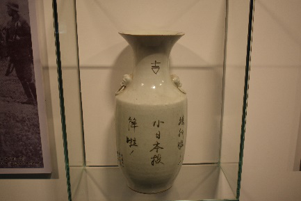 接着,我们来到了左侧展厅,左侧展厅陈列的是有关于南京大屠杀的藏品。率先进入我们眼帘的是两把交叉的日本武士刀,陈刚讲解员告诉我们,曾经有一个三年级的孩子在看到这件藏品时对他说:这是一把沾满了鲜血的刀。是啊,日本对中国进行惨无人道的大屠杀行为,是每个中国人都不应该忘记的历史,而日本政府对历史的歪曲否认中国更是不能接受。随后,陈刚老师向我们展示了著名的替父谢罪信以及当时人民日报的头条报道,日本友人西山诚一在2015年12月14日参观完南京民间抗日战争博物馆之后,交给了吴先斌馆长一封“道歉信”,替参加侵华战争的父亲向南京人民、向中国人民道歉。这一封道歉信具有重要的历史意义,它证明了南京大屠杀的真实性,也证明了有关南京大屠杀的怀疑是没有根据的。