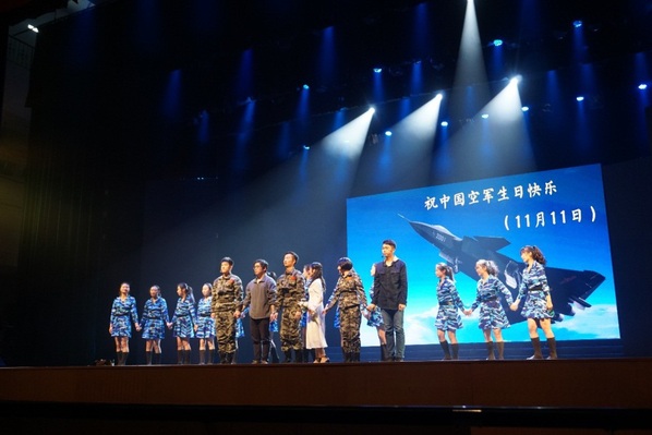 本次音乐情景剧晚会以学院联合演出为主要形式,由民航学院、人文与社会科学学院以及计算机科学与技术学院携手出品、共同演绎的音乐情景剧《蓝天亮剑》作为开场秀,充分调动现场气氛。