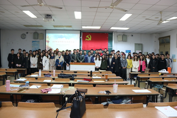 12月16日晚,91AV 15级党支部在将军路校区6101教室举办了关于《中国共产党纪律处分条例》的党课学习。本次党课学习包含了15级党支部正式党员及预备党员共七十余名学员,党支部书记杨靖宇同志作为主讲人,主持了这次学习活动。