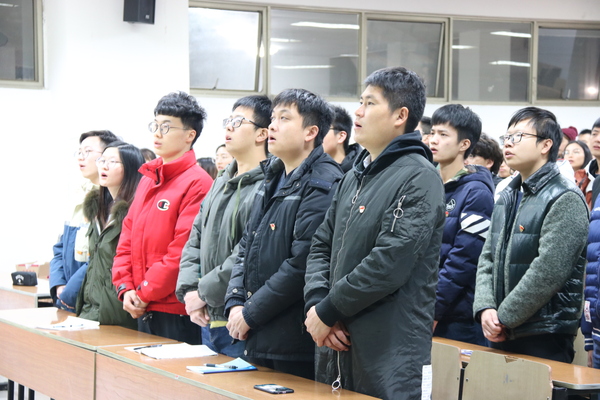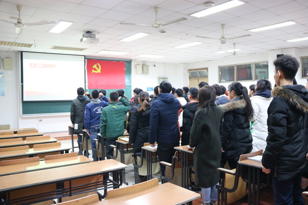 12月16日晚,91AV 15级党支部在将军路校区6101教室举行了2018年下半年第四次党员大会,本次大会包含正式党员及预备党员共七十余名,党支部书记杨靖宇同志主持了此次会议。本次党员大会共有如下几项议程:表决通过预备党员转正的决议,党员年度考核细则,向党旗宣誓,合唱《国际歌》。