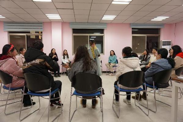 在学习完化妆技巧的热身活动后,心理健康中心助理胡璟带领在座的各位女生举行互动游戏“朵朵开”,营造了轻松的气氛。游戏过后,所有人排成一个圈,用五个词讲述最近一个月的心情。之后,助理又进一步通过两个游戏“大风起”、“起风了”,让同学们敞开心扉,分享自己的开心与不开心。在这里,大家畅所欲言,每个人有不同的故事,每个人有其不同的精彩,有的故事令人感动,有的故事令人大笑。