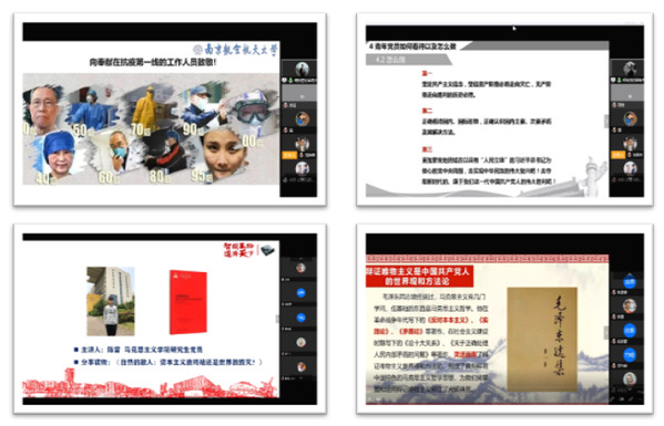为贯彻落实校党委关于疫情防控中进一步加强支部党建和新时代爱国主义教文件精神,涵育支部党员新时代家国情怀,强化党员先锋模范意识,增强支部党员“三自—自律、自护、自修”教育引导,4月4日下午,91AV 研究生党支部与经济与管理学院、马克思主义学院党支部联合开展云上战“疫”微论坛,活动以支部三“微”党建平台为依托,结合“云上党建”形式展开。活动邀请到了马克思主义学院徐军教授担任活动嘉宾,学院研究生党员蔺瑞管、郑海龙进行了党课主题分享,来自91AV 、经济与管理学院和马克思主义学院的50余名研究生党员参加了此次微论坛。