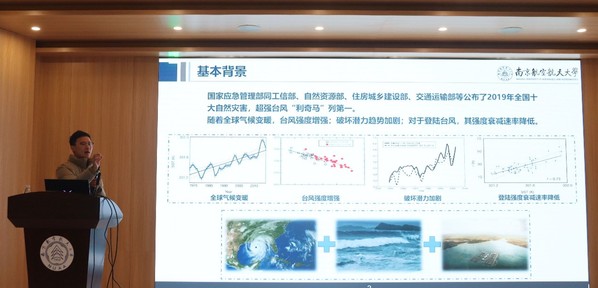 首先,民航学院的任贺贺老师做了“不同海面温度下理想飓风的大涡模拟”报告,报告以海上离岸式机场为切入点,以“模拟设置-基本风特征-流场特性-风速分布-潜在损害功能-结论”为基本结构展示了台风风场模拟的具体情况。