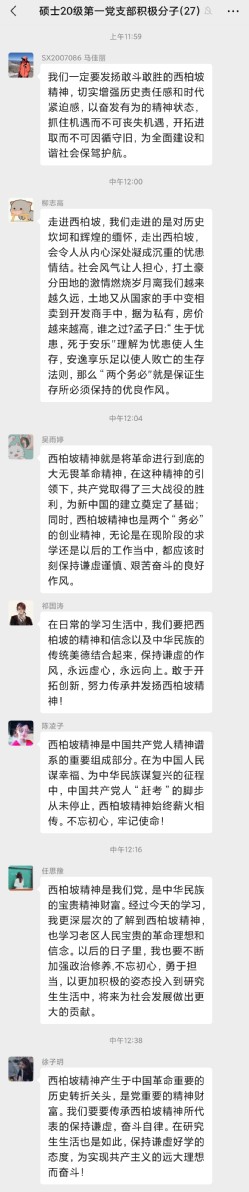 会后,支部的党员和入党积极分子深受西柏坡精神的鼓舞,纷纷在微信群中发表学习体会。