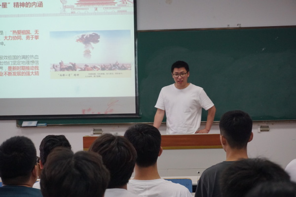 支部书记陈欢从“两弹一星”精神的内涵、“两弹一星”精神意义、继承和发扬“两弹一星”精神三个方面向支部成员讲授专题党课。陈欢指出,“两弹一星”精神凝聚着科技工作者报效祖国的满腔热血和赤胆忠心,反映出他们坚定地理想信念和崇高的精神境界,是新时期推动我国社会主义建设事业不断发展的强大精神力量。作为新时代民航学子,更要深刻感悟“两弹一星”精神内涵,汲取前行奋斗力量,抓住行业发展机遇,继往开来、接续奋斗,矢志不渝为民航强国建设添砖加瓦。