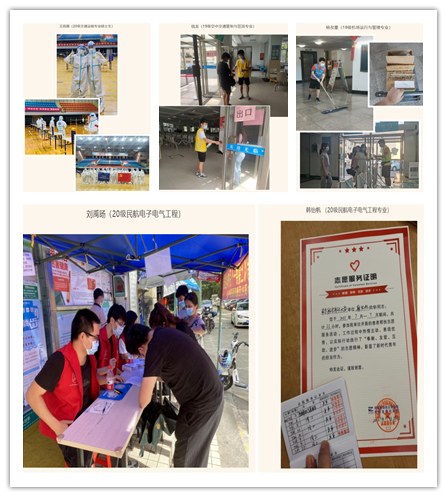 在全校的疫情大考面前,学院留校学生积极报名加入抗疫志愿者队伍,协助学校开展第六次核酸检测,参与食堂、宿舍等校区场所的运行维护工作,先进空域系统创新研究“五好”导学团队更是集体参加将军路校区第六轮核酸检测志愿服务。他们用行动诠释担当精神,同心携手,共同抗疫,涌现出了一批先锋模范。