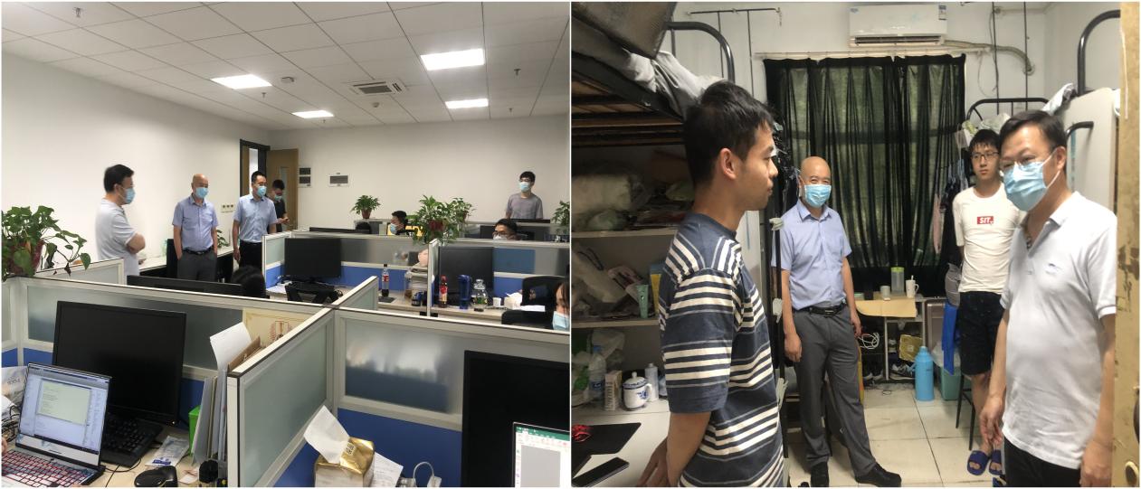 学院党委书记刘建成、院长孙建红带队走访慰问留校学生,详细查看实验室和宿舍的卫生和安全情况,询问同学们的健康状况、在校学习和生活情况以及防疫物资的配备情况。