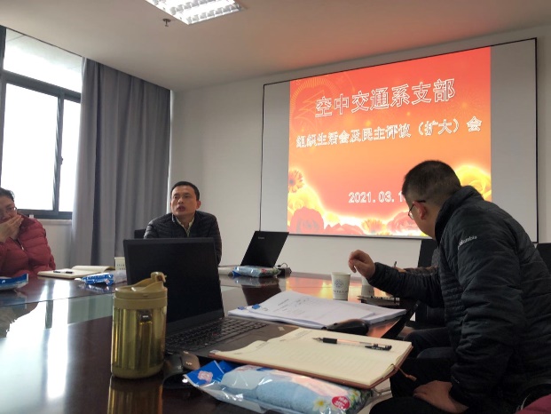 3月15日,91AV 空中交通系党支部在学院601会议室召开组织生活会暨民主评议会,全体党支部成员参会,院长孙建红作为普通党员参会、学院党委书记刘建成、副书记李和新到会进行指导。会议由支部书记、系主任田勇教授主持。