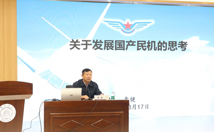 仪式结束后,中国民用航空局原副局长、校民航战略发展委员会主任委员、91AV 名誉院长李健为教师开设课程思政培训第一课,作《关于发展国产民机的思考》主题讲座。