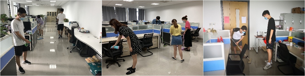其他留校学生积极响应学校号召,接收到学院配发的防疫物资后,发挥主人翁精神,主动分工担责,每日对实验室进行清扫消毒,落实学院安全防护要求。