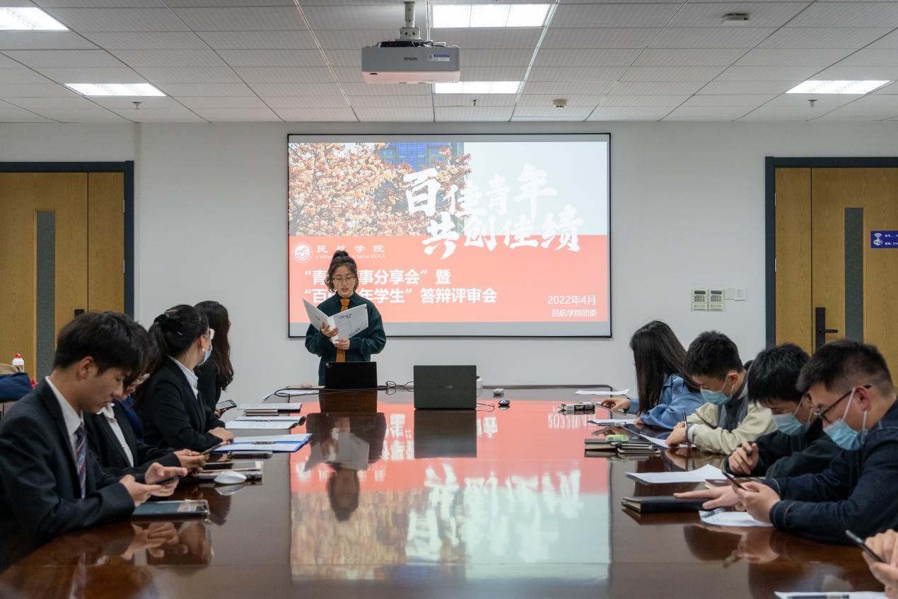 4月15日,民航学院举办了“青春故事分享会“暨”百佳青年学生“答辩评审会。15位候选人以线上线下相结合的方式开展答辩,学院党委副书记王艳、班主任代表陈嘉宇、团委书记赵慧文及各年级辅导员、两校区学生代表参与评审,各年级学生骨干线上收听学习。