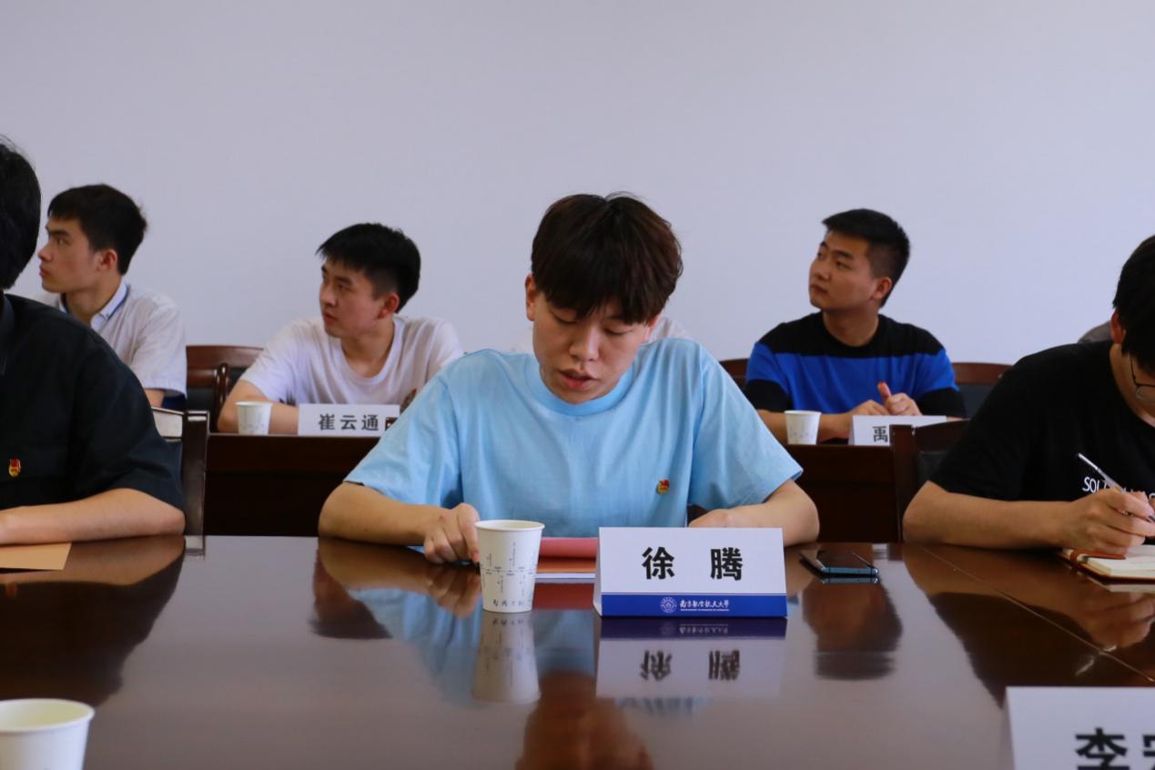 党员代表吴天禹以“依托党支部帮扶同学,发扬党员先锋模范作用”为主题进行交流,重点对学生党员在学院和年级指导下依托党支部开展学业帮扶、发挥学生党员先进性作了经验交流和感悟分享。团员代表徐腾在交流学习心得时指出,要牢记总书记的嘱托,以追求进步作为青年最宝贵的特质,不负党和人民最殷切的希望。严于律己,做好本职工作,发挥模范作用,是他作为寝室长和共青团员义不容辞的责任。在“学生代表说专业”环节,赵煜新结合习近平总书记重要讲话精神讲述专业特色,提出机务专业学生应着眼于民航飞行器健康管理和持续适航保障,应把安全意识和可持续发展理念时刻牢记心中。