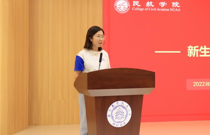 在院长寄语环节,孙建红代表学院对2022级研究生新生的到来表示热烈欢迎,提出三点希望:一是希望同学们坚定思想、认清时代,做有追求的民航人,时刻谨记寒窗苦读的初心,保持高度的自觉心和自省力,不受繁杂事物干扰;二是希望同学们探索创新、实干笃行,做有本领的民航人,夯实专业知识、练就过硬本领,为创新型国家建设奉献青春力量;三是希望同学们志存高远,胸怀家国,做有担当的民航人,承担时代使命,让人生历程和民族复兴进程同步共振。