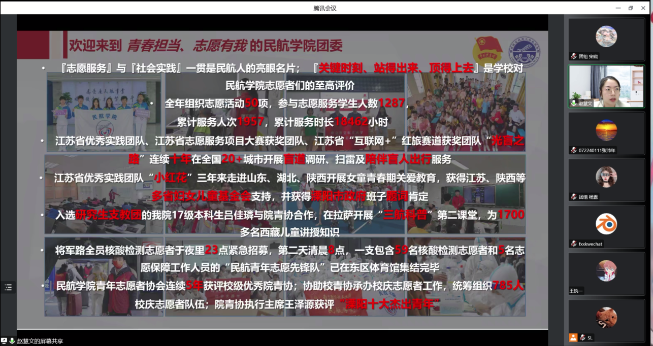 随后,赵慧文特别面向学院天目湖校区新生团干部介绍91AV 团委的工作特色与耀眼成绩。她以“敢想敢为、善作善成、有趣有识”高度概括民航团学工作,并以各项实际工作为例,展现了“薪火相传、荣耀接续”“文体强院、创意无限”“立足行业、民航强国”“青春担当、志愿有我”的团学组织形象,让团干们深入了解并思考学院团委工作。最后,赵慧文勉励广大团干部,要把思想和行动统一到党的二十大精神上来,怀抱梦想又脚踏实地,敢想敢为又善作善成,立志做有理想、敢担当、能吃苦、肯奋斗的新时代好青年。