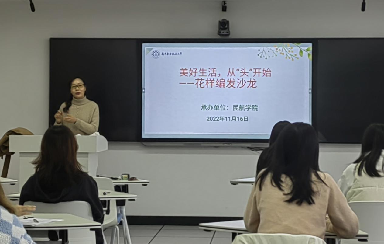 为传承中华优秀传统文化,加强师生互动,发展美育教育成果,全面加强研究生五育并举平台建设,91AV 于2022年11月16日在 举行“以劳育美,巧手编发”研究生花样编发沙龙。活动邀请了学院张华老师作为主讲嘉宾,30余位研究生参加。