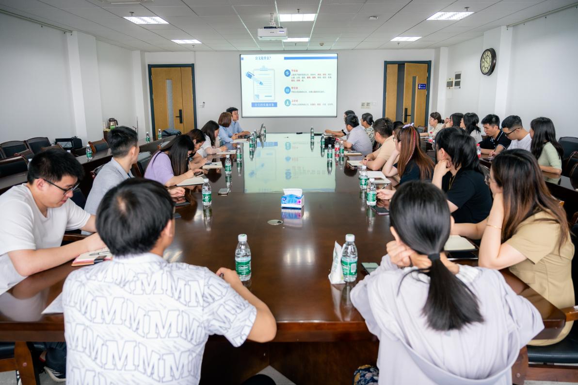 王洋就公文写作技巧与方法进行了分享。他从公文的分类与特征、结构与内容、技巧与方法等三个方面对常用文写作进行介绍,并结合具体文稿案例从定位、逻辑、内容、写作方法、建议五个方面,细致讲解各类公文的写作思路和写作技巧。他认为一篇好的公文文稿应该定位准、逻辑清、内容精,能够明大势、谋大局、求大道,他鼓励大家多看、多悟、多写,努力提升写作技能,更好服务学院发展。