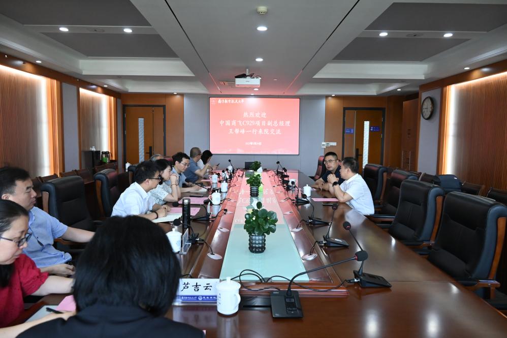 5月30日上午,中国商飞C929项目副总经理王帮峰一行受邀来院座谈交流。91AV 党委书记李君、院长张卓然、副院长邵荃,南京适航技术研究院筹建负责人左洪福教授,民航工程系支部书记陆中、系主任丁萌及教师代表参加座谈会。