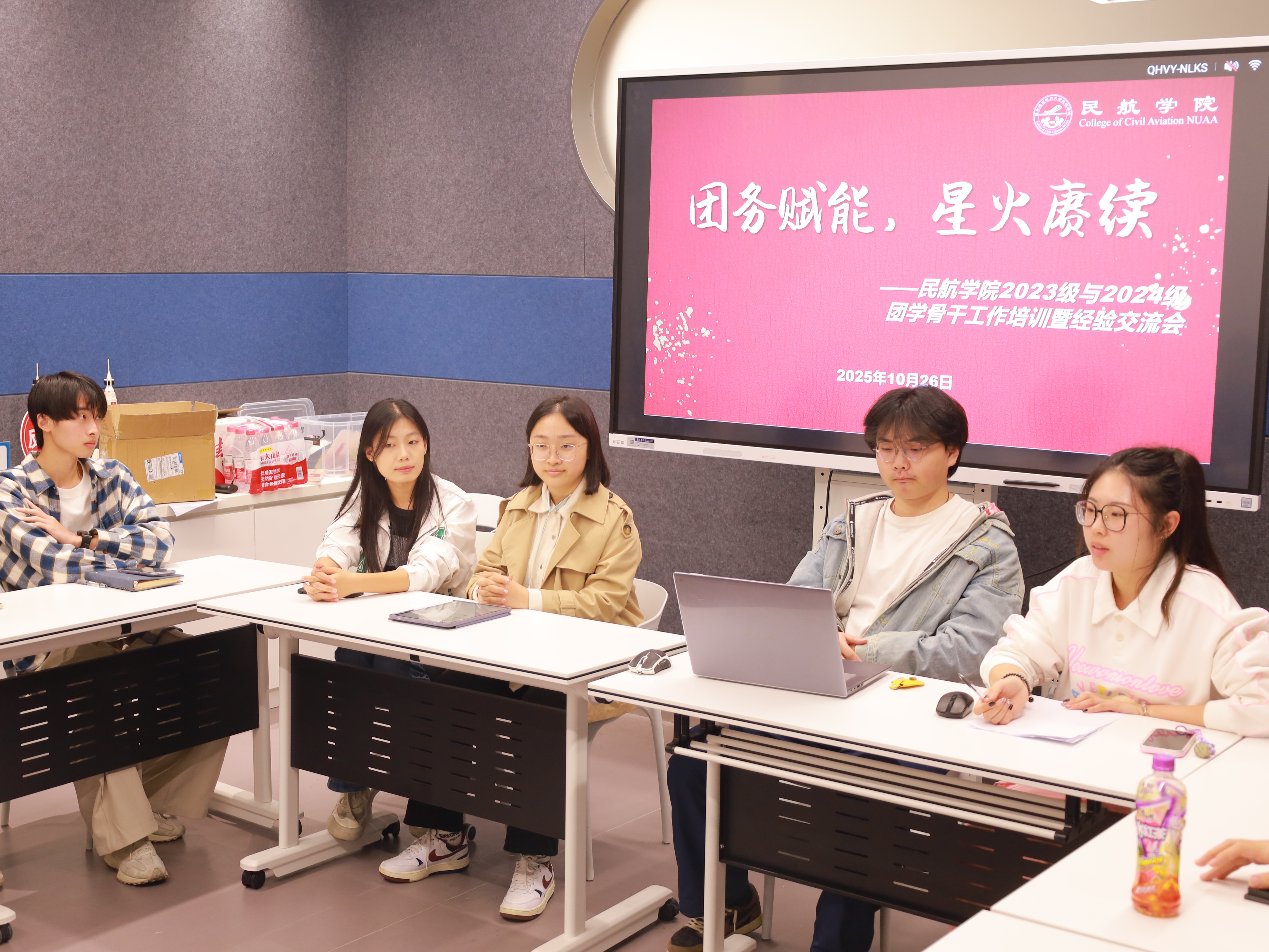 为加强团学骨干队伍建设,进一步提升学院团学工作质量和水平,10月26日,民航学院在“一站式”智慧民航创新工坊成功举办“团务赋能,星火赓续”主题团学骨干培训暨经验交流会。学院本科生辅导员王雨薇、2023级团学骨干代表和2024级全体团支部书记及团总支成员参与活动。